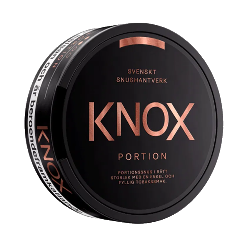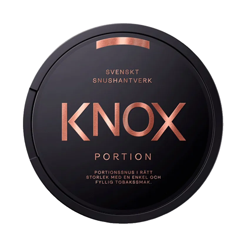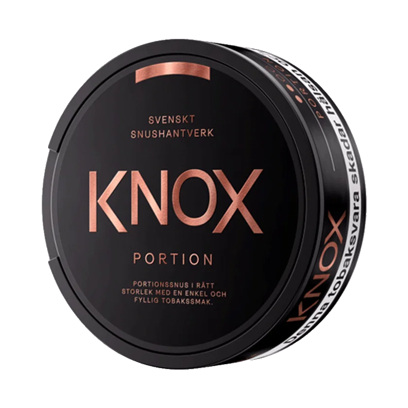 Knox Portion är ett portionssnus med smak av tobak. Prillorna är i normalt format och styrkan klassificeras som stark. Knox Portion tillverkas av Skruf Snus och kommer som Original Portion.