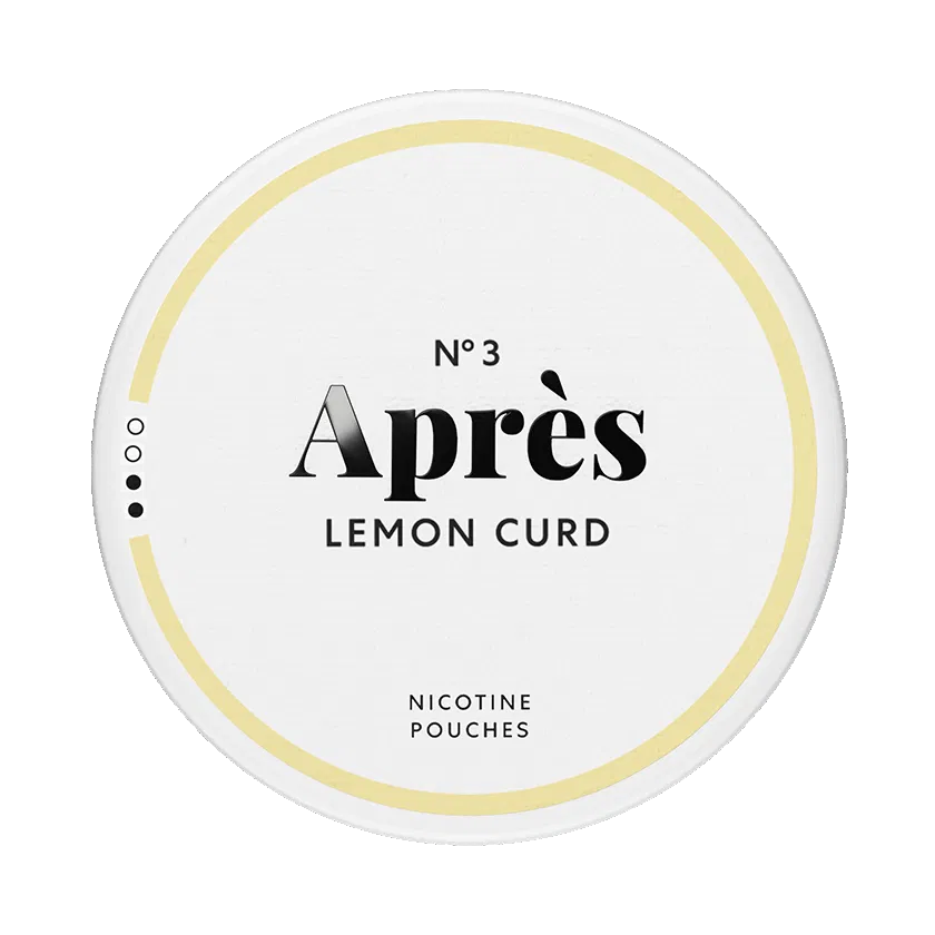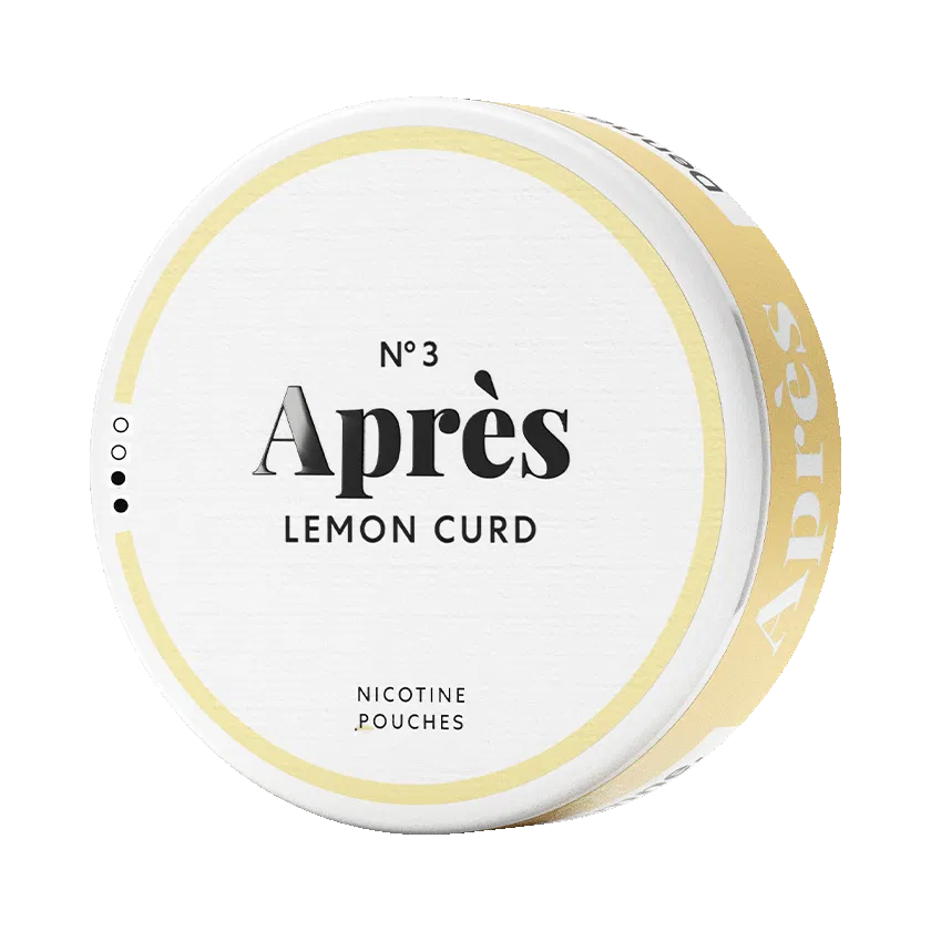 Après Lemon Curd N°3 är ett vitt snus med smak av citrus och citronskal. Styrkan är normal och formatet är slim. Varje dosa innehåller 20 st portioner.
