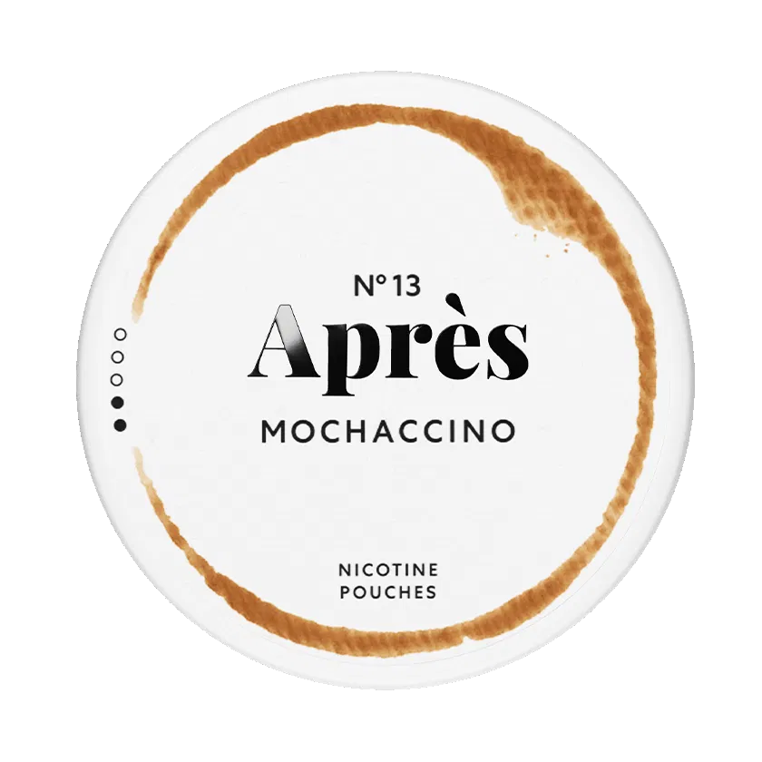 Après Mochaccino N°13 är ett vitt snus, fritt från tobak. Styrkan är normal och formatet är slim. Smak av kaffe.