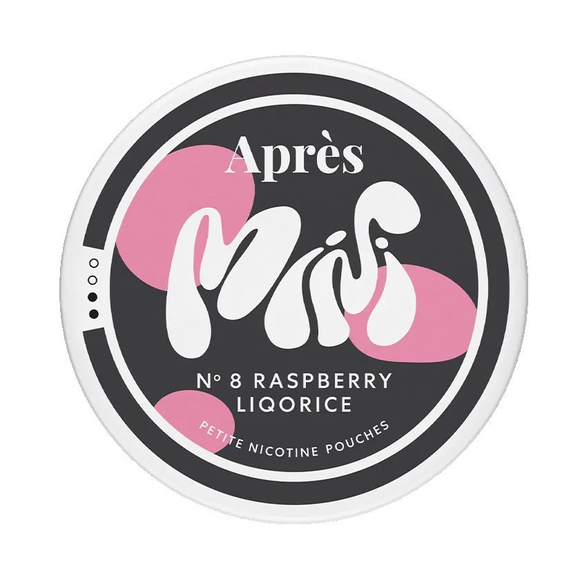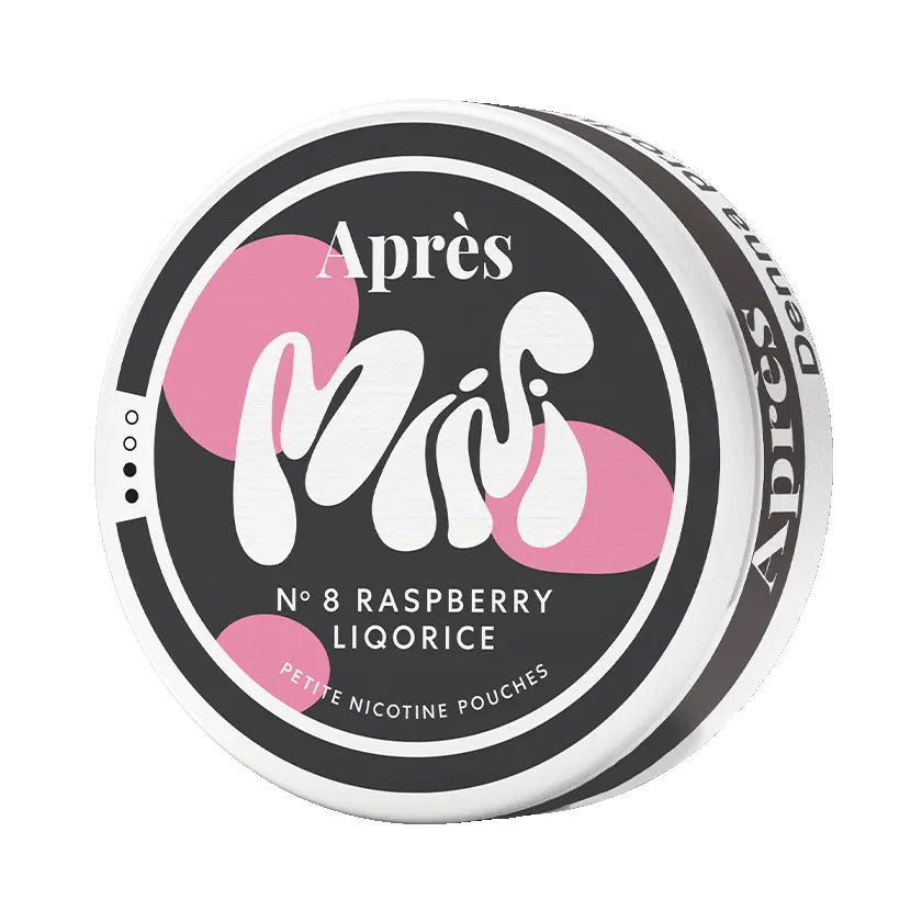 Après Raspberry Liqorice Normal Mini N°8 är ett vitt och tobaksfritt snus med smak av hallon och lakrits. Styrkan är normal och formatet är mini.