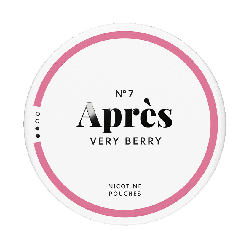 Après Very Berry N°7 är ett vitt snus med smak av bär. Styrkan är normal och formatet är slim. Varje dosa innehåller 20 st portioner.