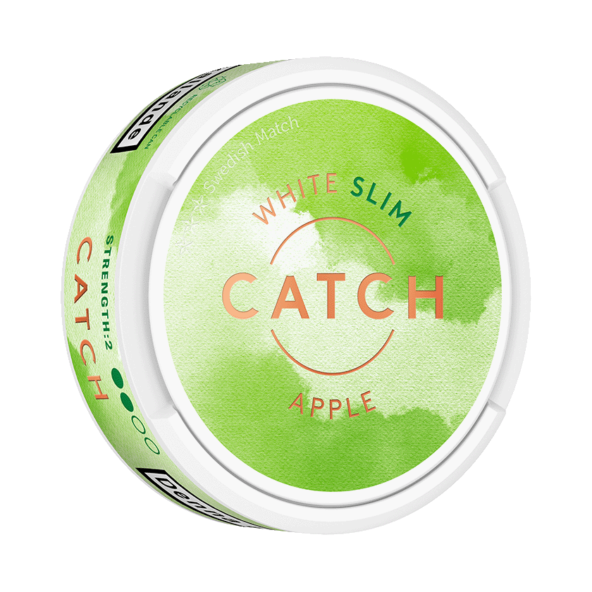Catch Apple Slim White är ett snus av typen Vit Portion med tobak. Smaken är tobak med inslag av äpple och apelsin. Formatet är slim och styrkan lägre än normal.