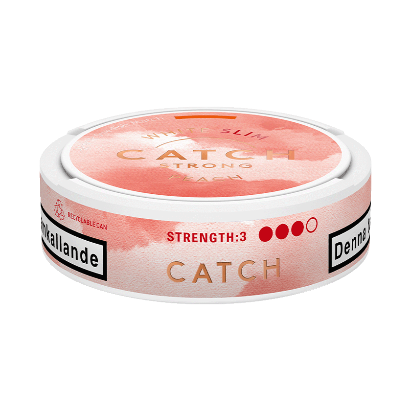 Catch Peach Strong Slim White är ett tobakssnus av typen Vit Portion. Smaken är tobak, persika, te och bergamott. Prillorna är i slimformat och styrkan är stark.