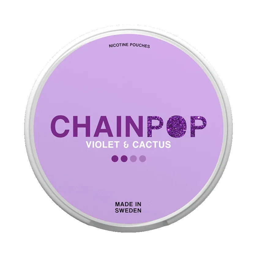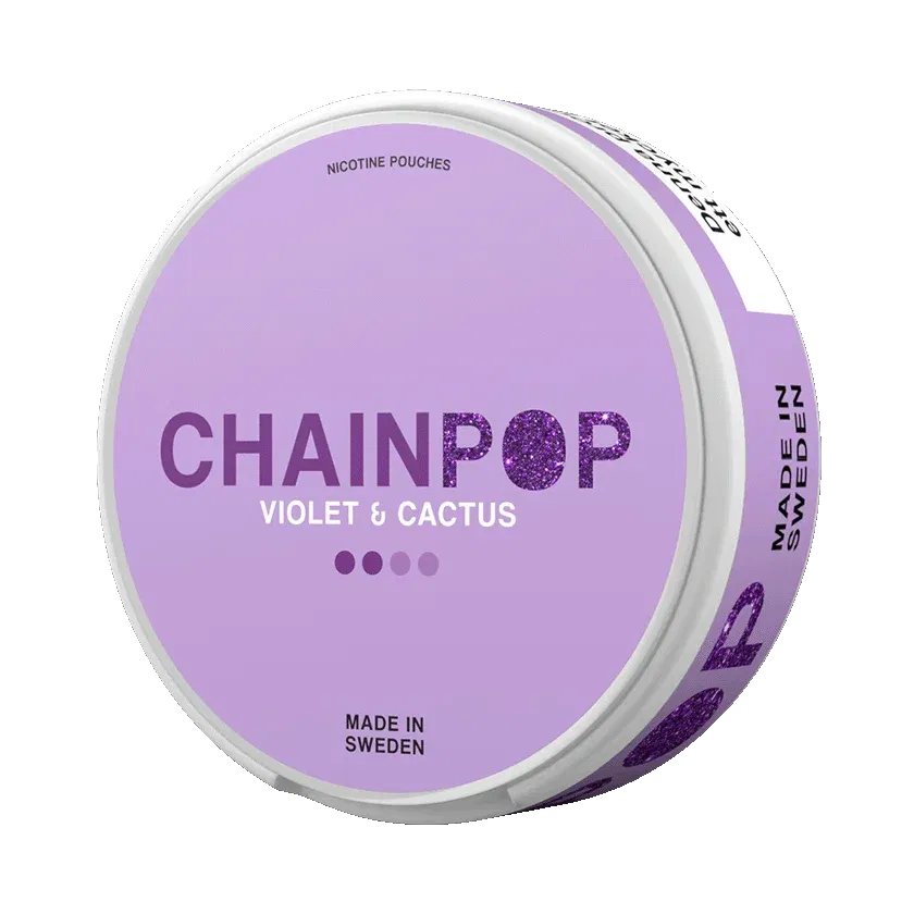Chainpop Violet & Cactus är ett vitt snus och har en smak av viol och kaktus med en hint av lakrits. Formatet på dessa nikotinpåsar är slim och styrkan karaktäriseras som normal.