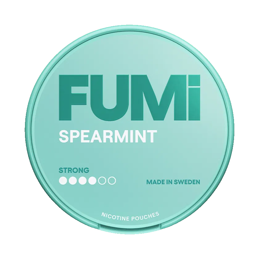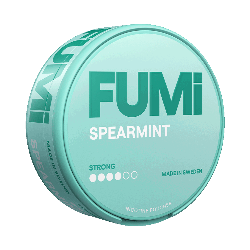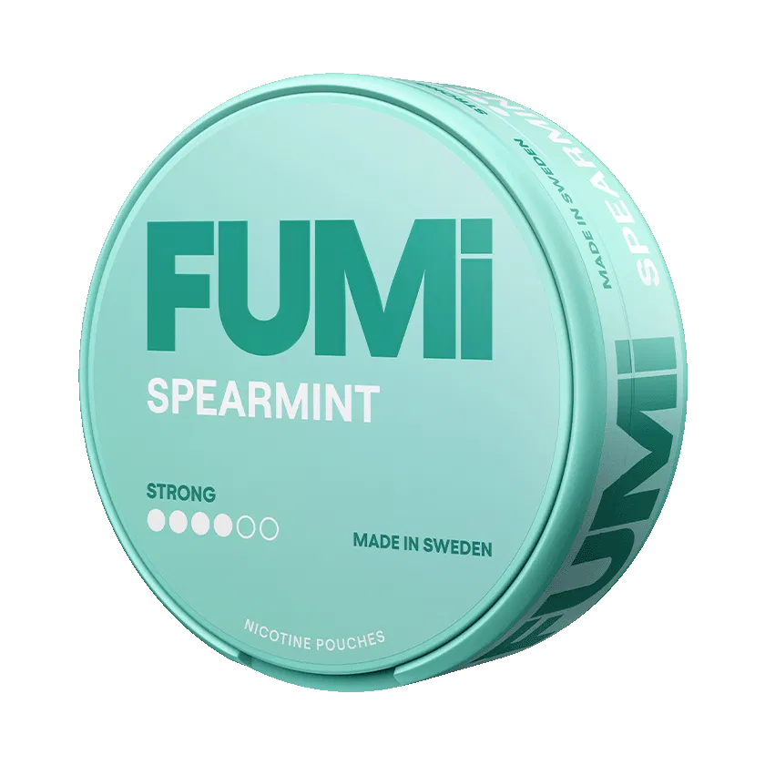 FUMi Spearmint Strong är ett vitt snus som är fritt från tobak. Nikotinpåsarna har ett slim format och styrkan är stark. Smaken är spearmint. Varje dosa innehåller 20 portioner.