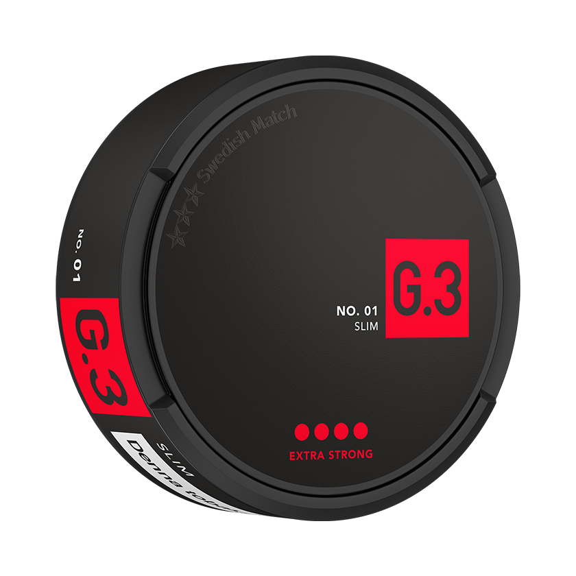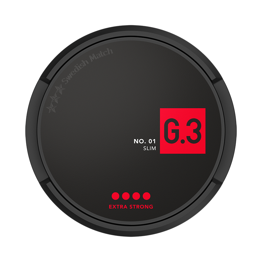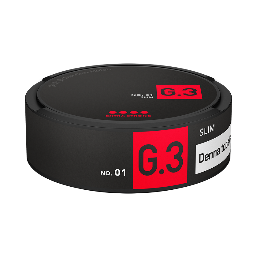 G.3 Slim Extra Strong är ett snus av typen original portion. Portionspåsarna är 24 till antalet i varje dosa är i slimformat. Detta snus innehåller tobak samt nikotin och har en smak av tobak med toner av hårdträ, bergamott, te och läder. Styrkan är extra stark.