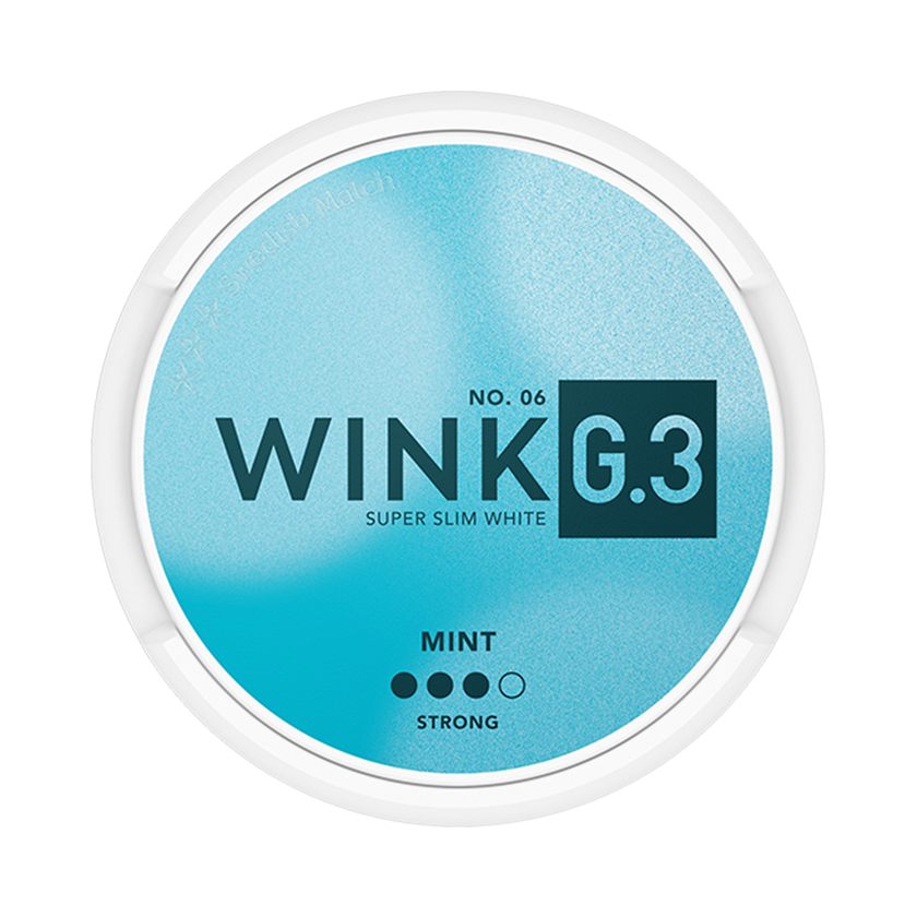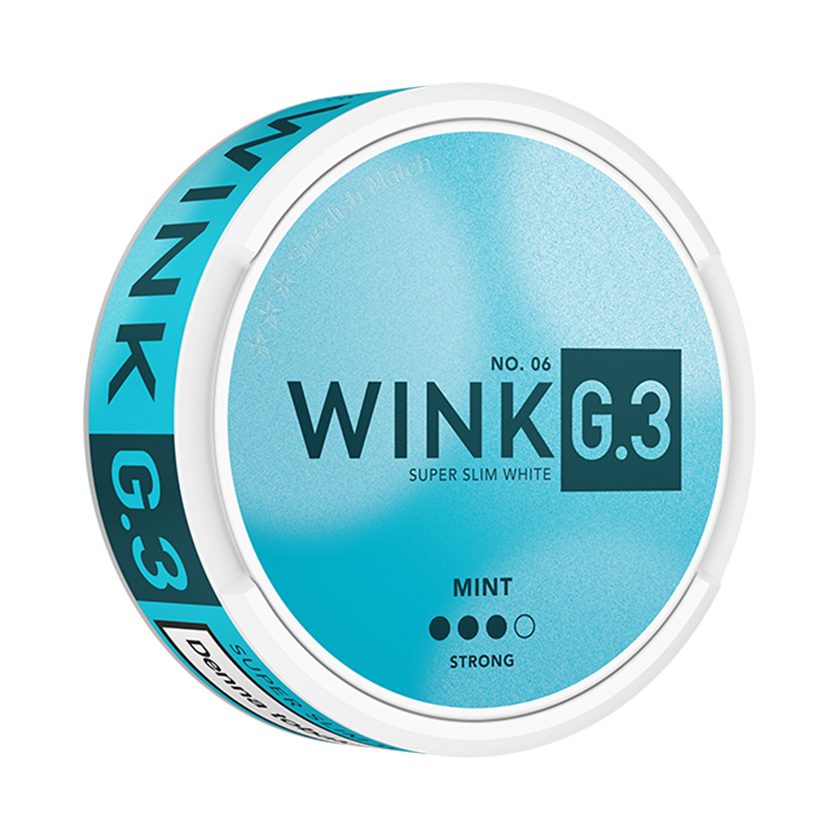 G.3 NO.06 VINK Super Slim Strong är ett snus av typen vit portion. Portionspåsarna är 31 till antalet i varje dosa och formatet är superslim. Detta snus innehåller tobak samt nikotin och har en smak av pepparmynta, örter och vanilj med inslag av traditionell tobak. Styrkan är stark.