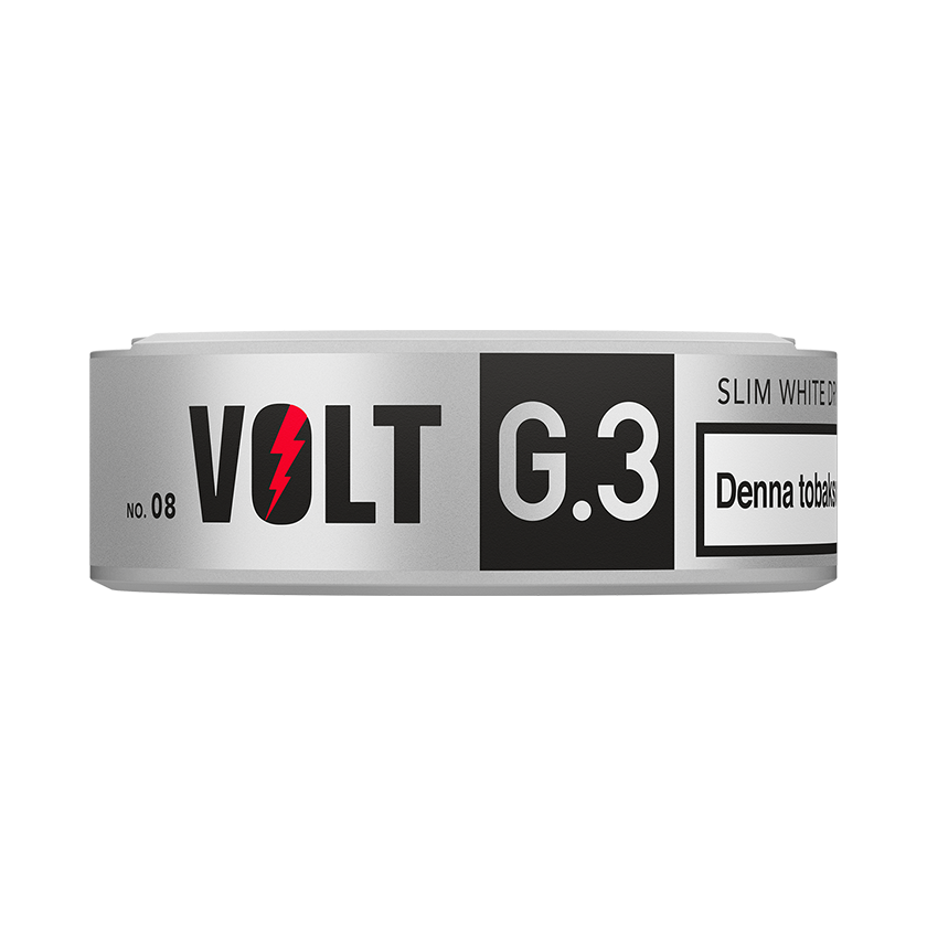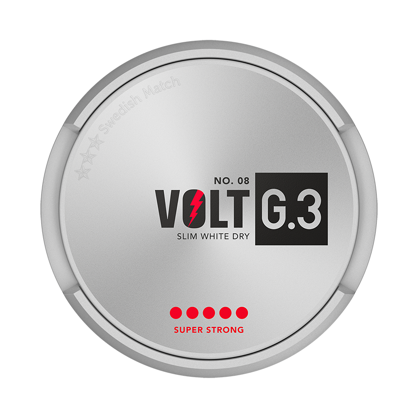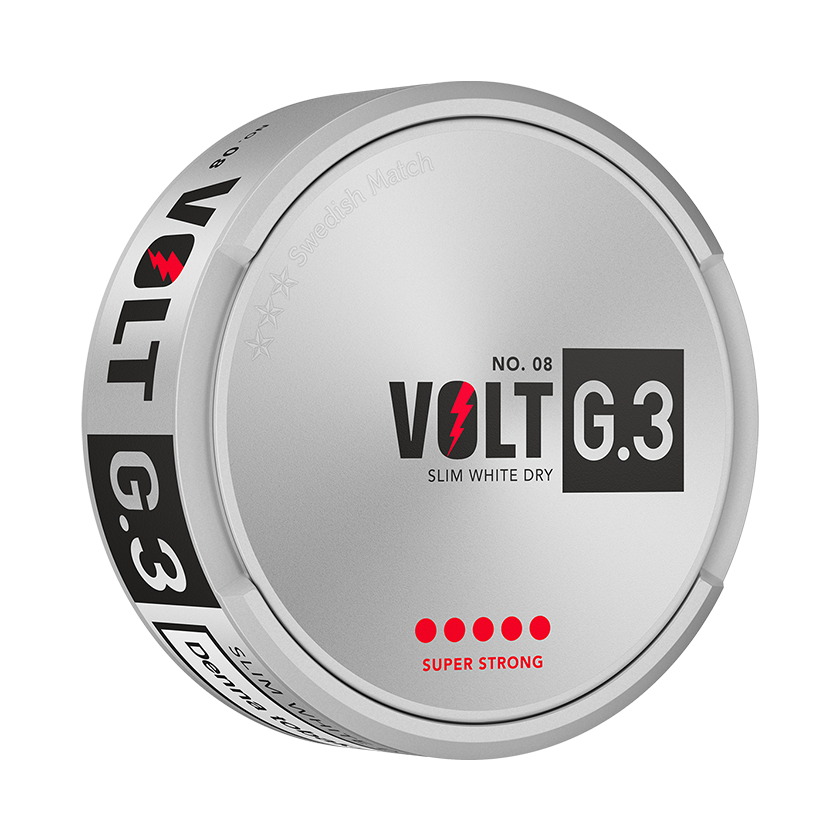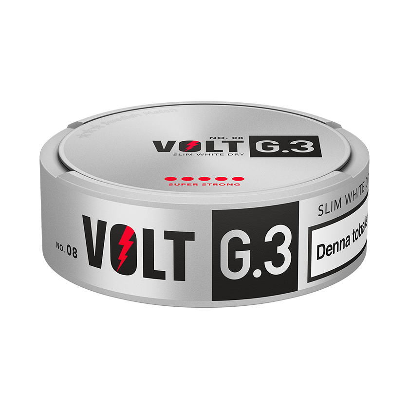 G.3 VOLT Slim Super Strong är ett snus av typen vit portion. Det innehåller tobak och har en smak av pepparmint, tobak, eukalyptus och ceder. Styrkan är extra stark i slimformat.