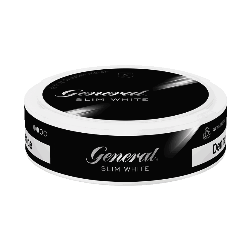 General Slim White Portion är ett vitt snus med tobak och nikotin. Smak av bergamott, citrus, te och tobak. Formatet är normal och styrkan är normal.