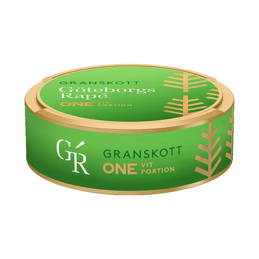 Göteborgs Rapé ONE Granskott Vit Portion är ett vitt portionssnus med smak av tobak, granskott, eneträ, citrus och äpple. Stark styrka och normal prillstorlek.