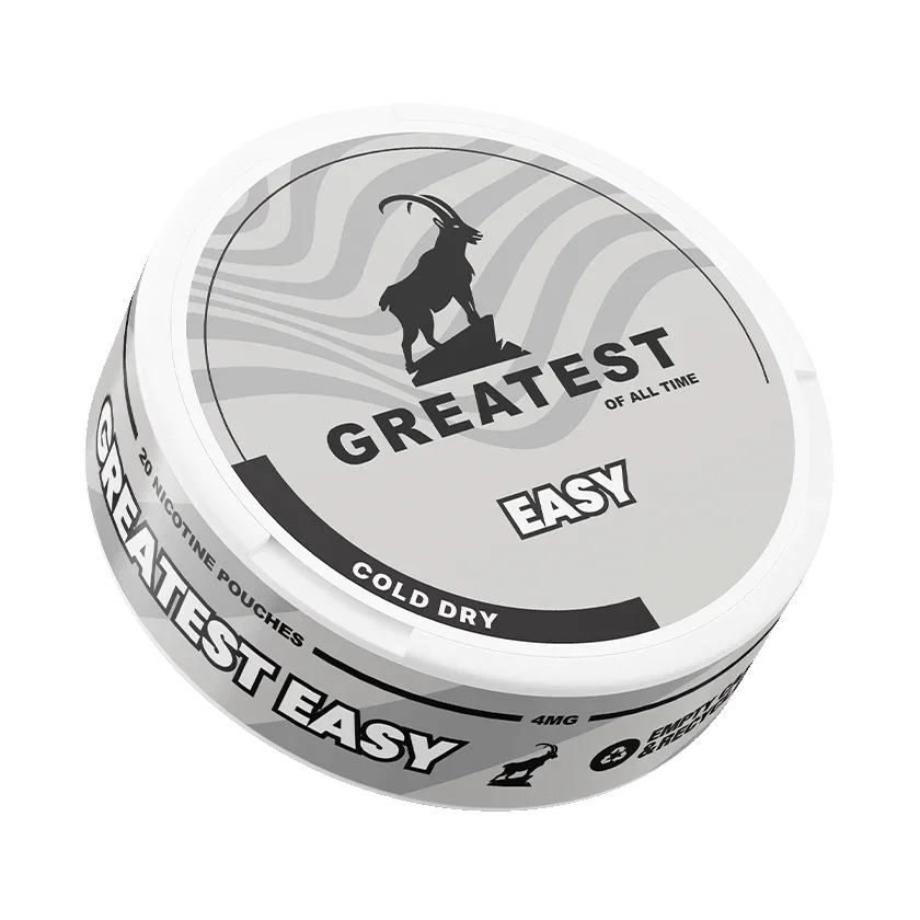 Greatest Cold Dry Easy är ett vitt snus från finska tillverkaren Premium Pouch Finland OY. Detta vita snus är fritt från tobak men innehåller nikotin. Smaken är mint och styrkan klassas som extra stark. Formatet på prillorna är slim.