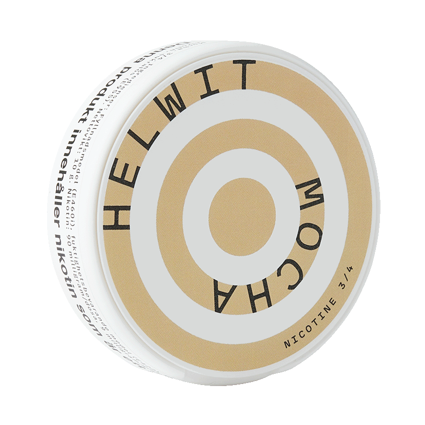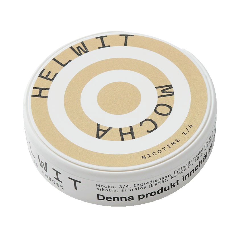 Helwit Mocha innehåller smaker från mockakaffe med karamellchoklad. Portionerna är i formatet Slim och levereras i nikotinportioner med styrka 9 mg/g.