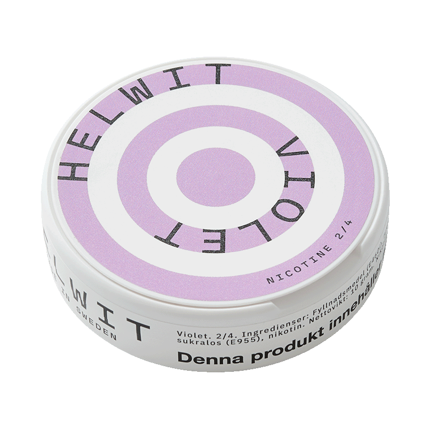 HELWIT Violet ett vitt portionssnus med smak av viol. Formatet är slim och styrkan normal.