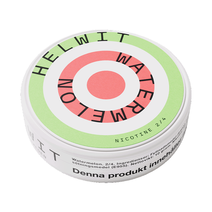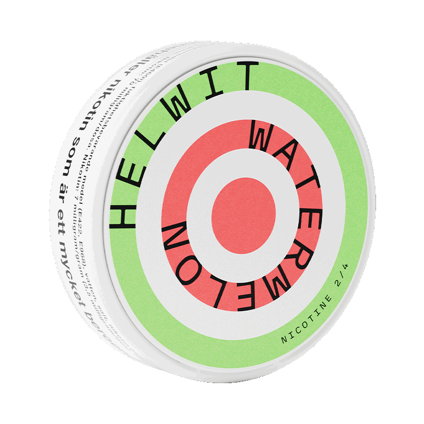 Helwit Watermelon Slim har en smak av vattenmelon. Portionerna är i formatet slim och innehåller normalstarka nikotinportioner.