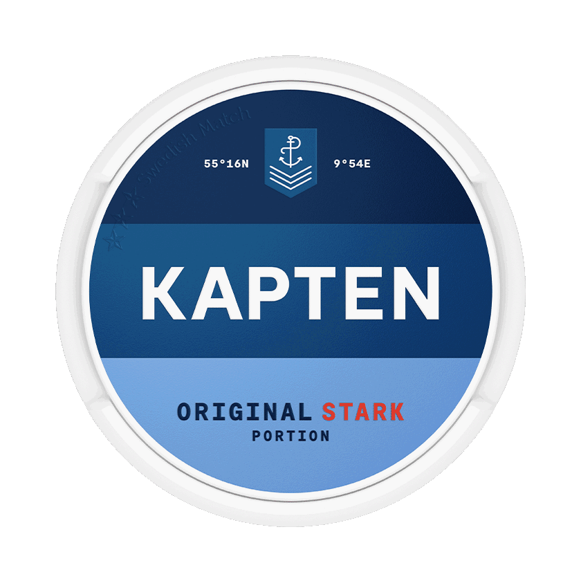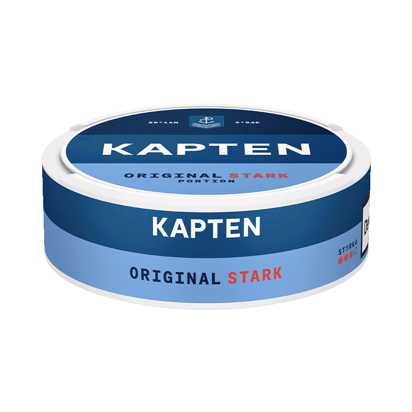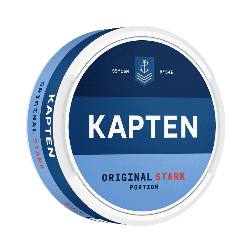 Kapten Original Stark Portion är ett snus med smak av tobak och bergamott. Styrkan är stark och nikotinpåsarna är i normalt format. Varje dosa innehåller 20 prillor och snuset kategorisers som Original Portion.