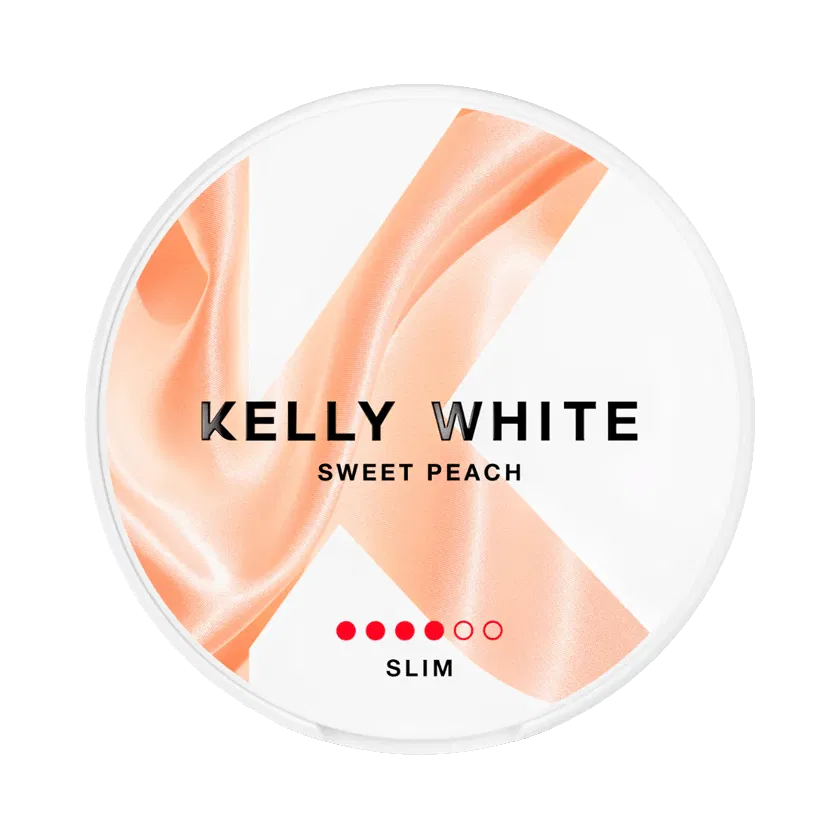 Kelly White Sweet Peach Strong Slim All White Portion är en nikotinproduct med smak av persika. Denna tobaksfria nikotinpåse är tillverkad av cellulosa och har ett slim-format.