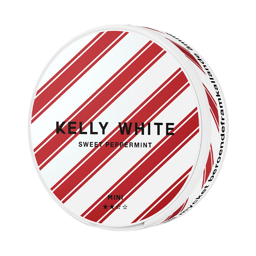 Kelly White Sweet Peppermint är ett vitt snus med smak av pepparmynta och polkagris. Formatet är mini och styrkan normal.