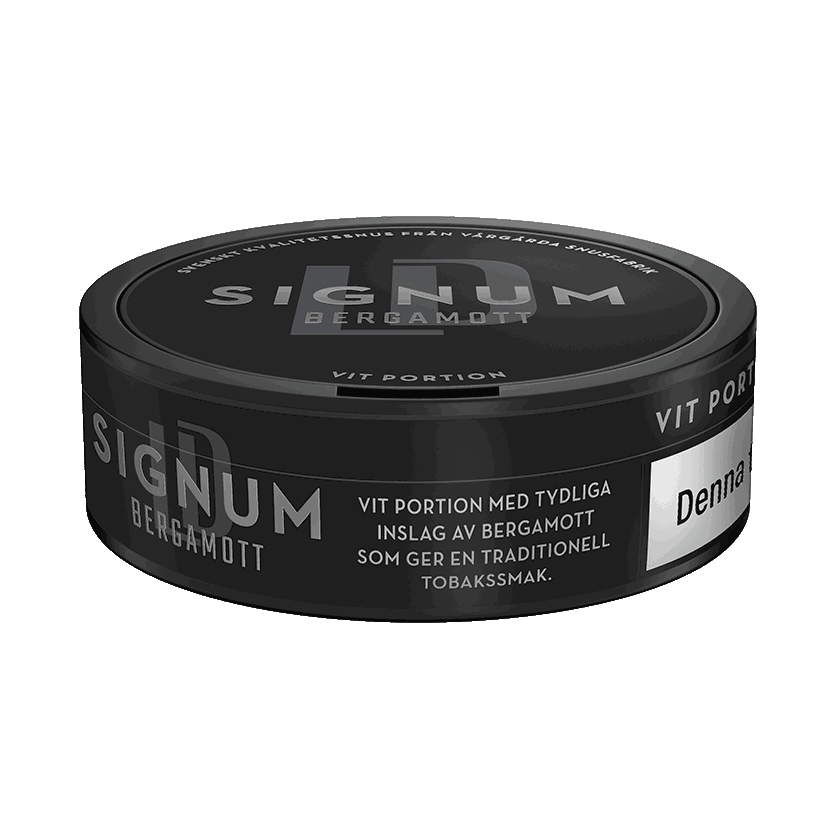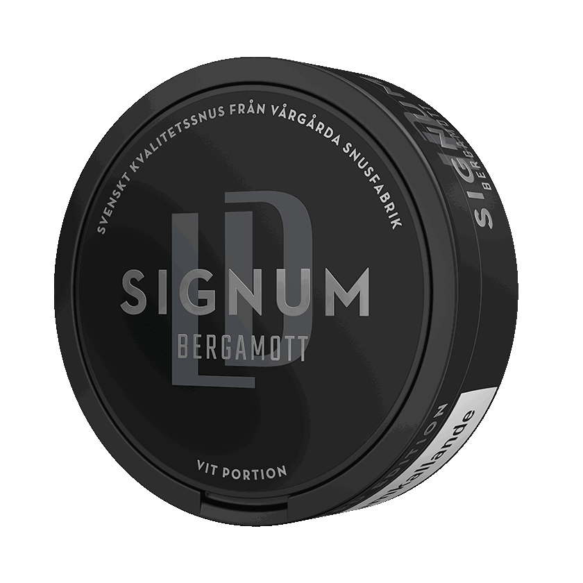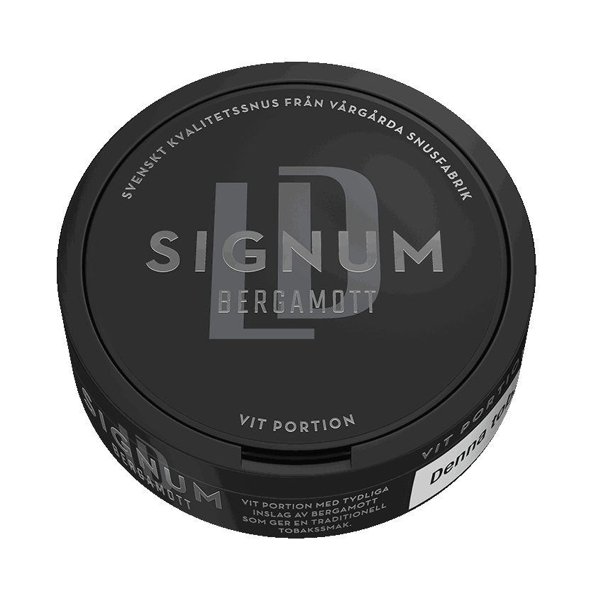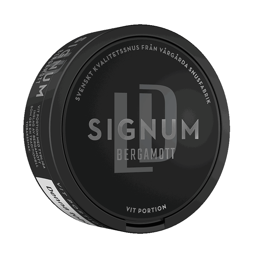 LD Signum Bergamott Vit Portion är ett vitt portionssnus. Smaken är tobak med inslag av bergamott, citrus och te. Formatet är normal och styrkan normal.