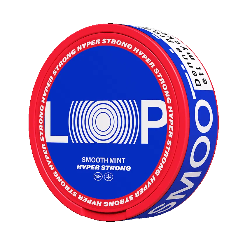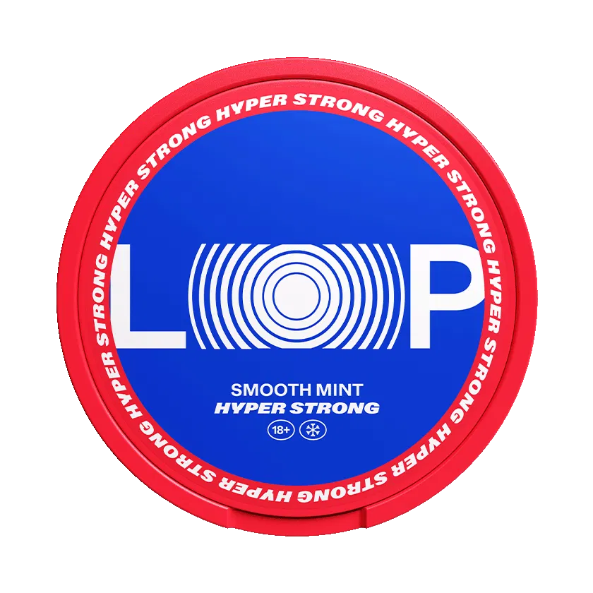 LOOP Smooth Mint Hyper Strong är ett tobaksfritt alternativ med smak av mynta. Dessa slimmade portioner är utformade för att passa under läppen och har en fuktig insida och en torrare utsida för att minska läckage i munnen.