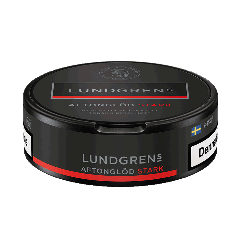 Lundgrens Aftonglöd Stark snus från varumärket Lundgrens har smak av tobak, läder och bergamott i normalformat. Detta är ett snus av typen White Portion. Stark styrka.