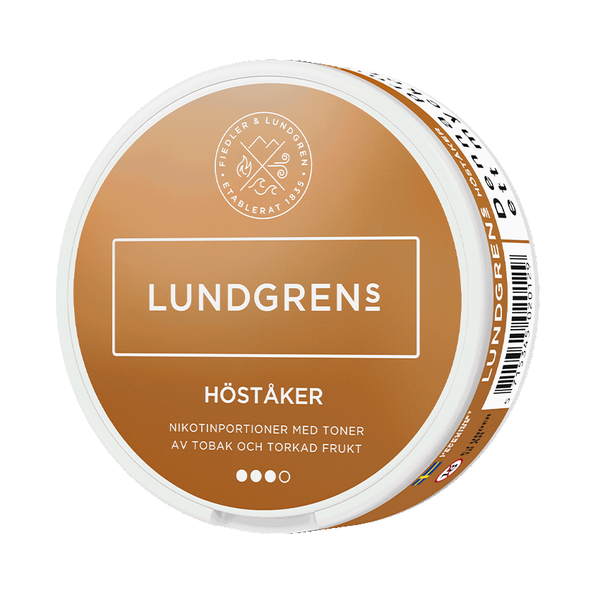 Lundgrens Höståker är ett vitt snus med smak av torkad frukt och tobak. Snuset är i normalformat, vilket ger en god passform under läppen för ökad komfort. De 21 vita, torra prillorna är utformade för att ge en jämn frisättning av både smak och nikotin över tid.