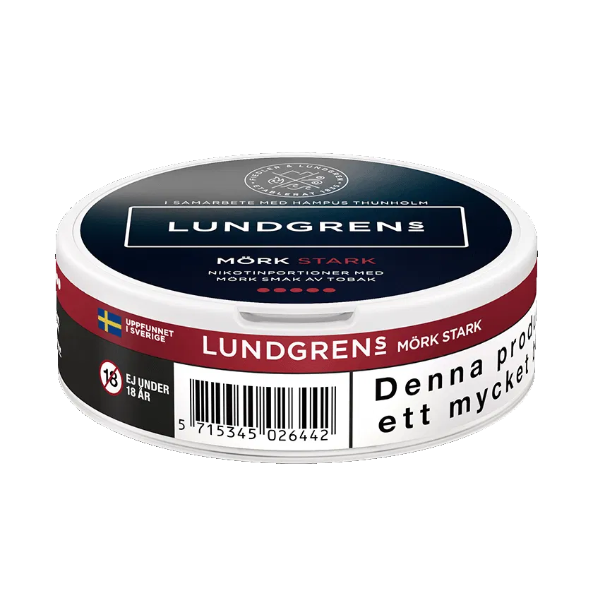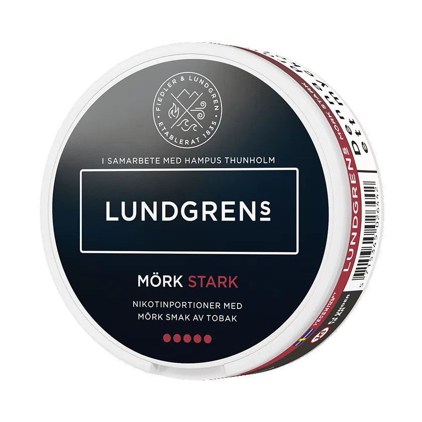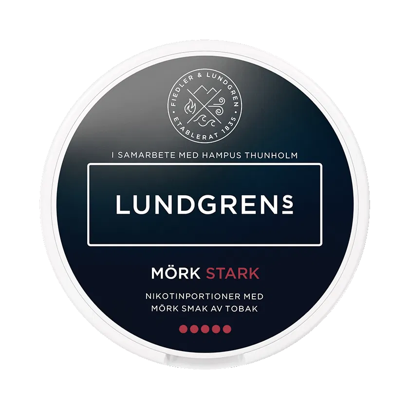 Lundgrens Mörk Stark All White är en nikotinpåse med normal-format och extra stark smak. Dessa är fria från tobak och har en traditionell smak av tobak med inslag av bergamott, hö och läder. Ytan på portionerna är torra vilket gör att de rinner mindre.