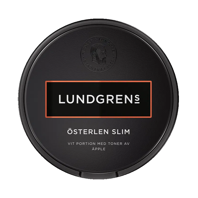 Lundgrens Österlen Slim är ett snus av typen Vit Portion. Smaken består av tobak, röda och gula äpplen. Normal styrka, slim format.