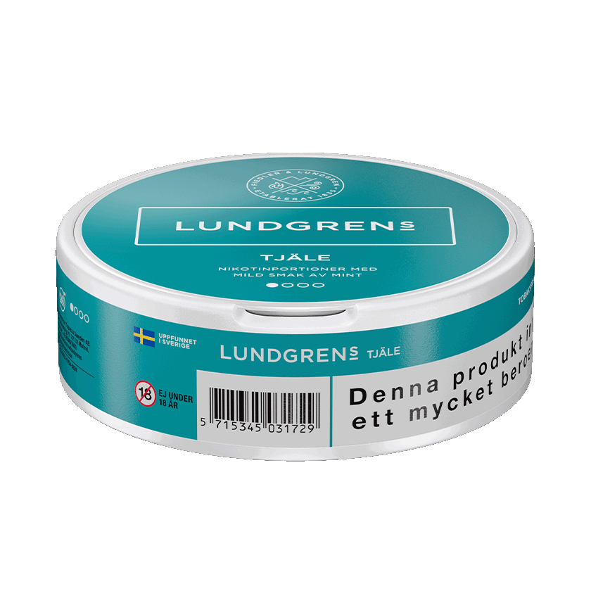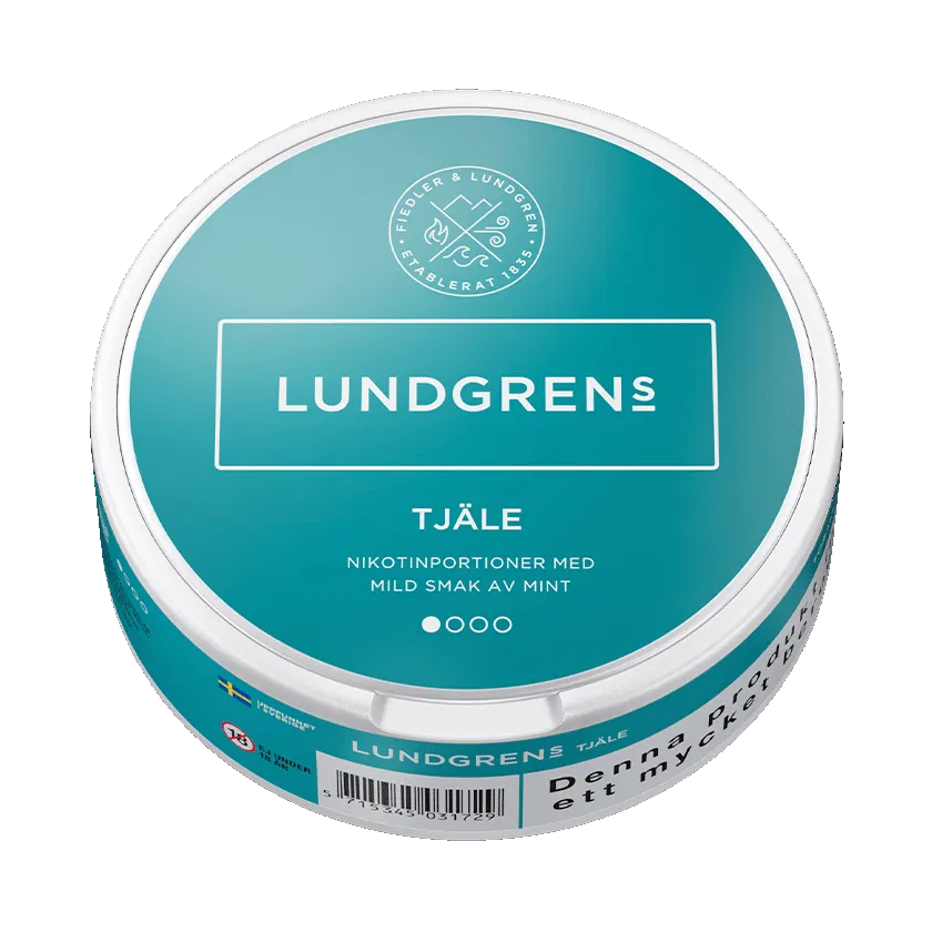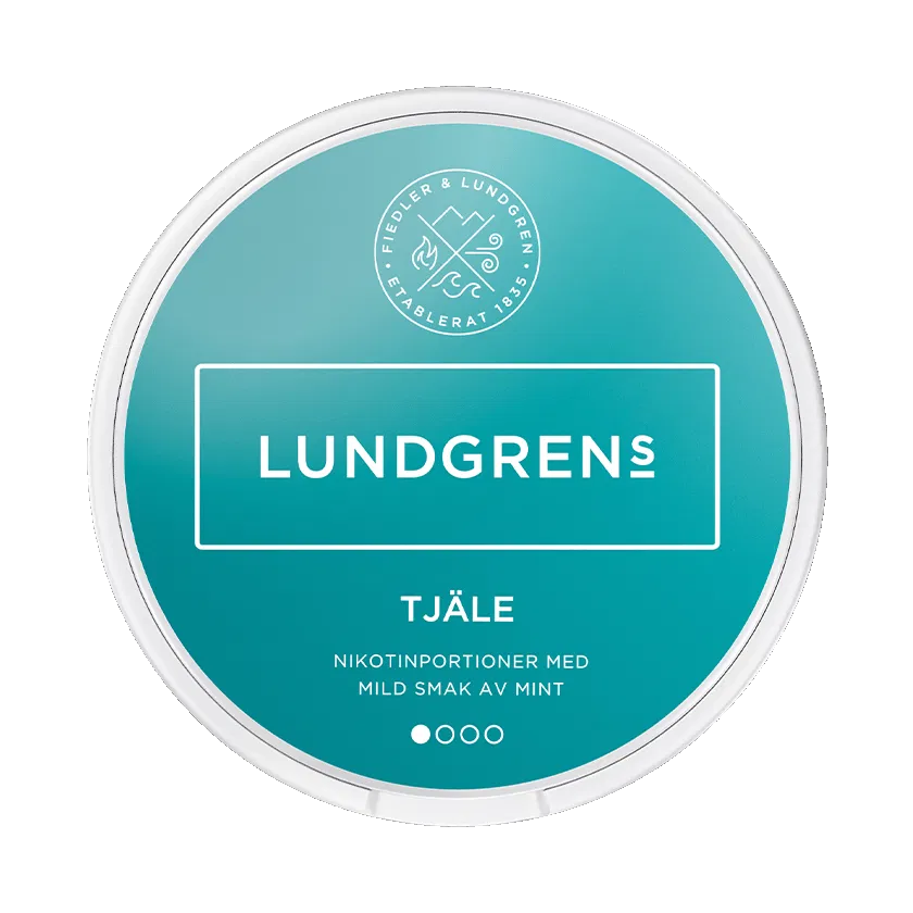 Lundgrens Tjäle har en smak av mynta och grönmynta. Detta vita snus har en normal storlek samt styrka och varje dosa innehåller 21 vita prillor.