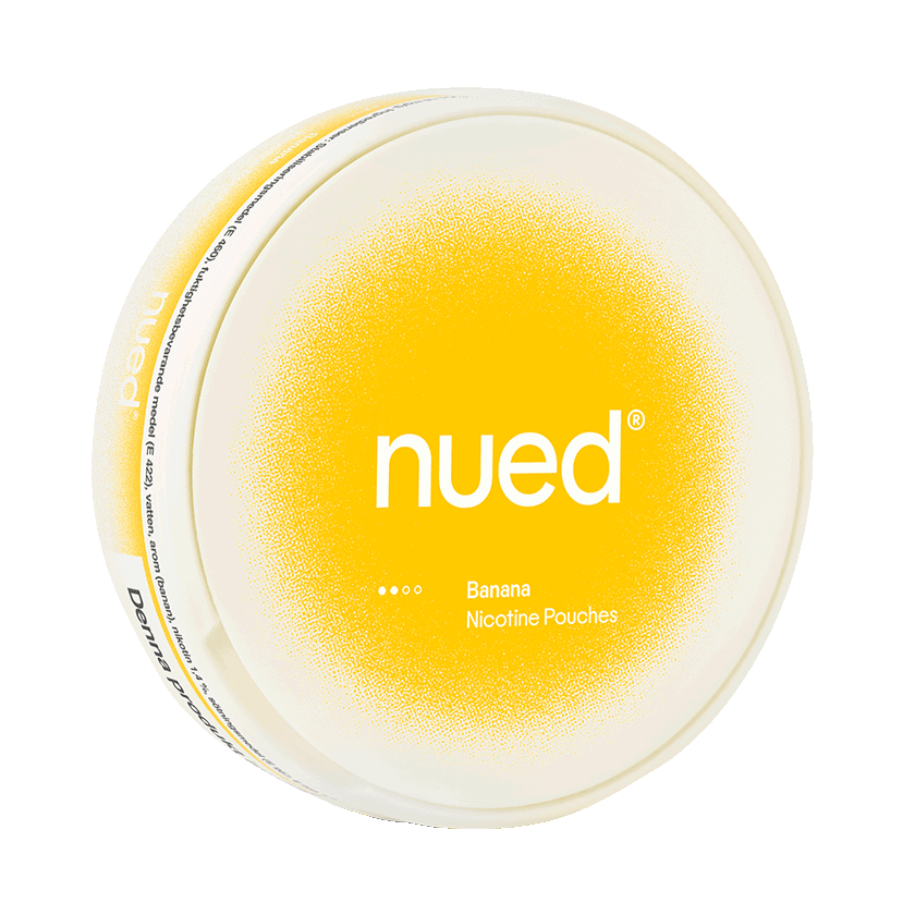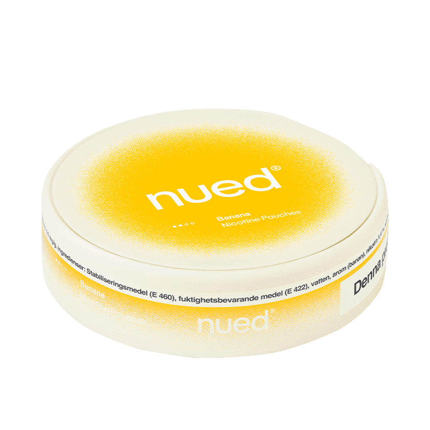 nued Banana är ett vitt snus med smak av banan. Nikotinpåsarna har ett slimformat och styrkan är normal.
