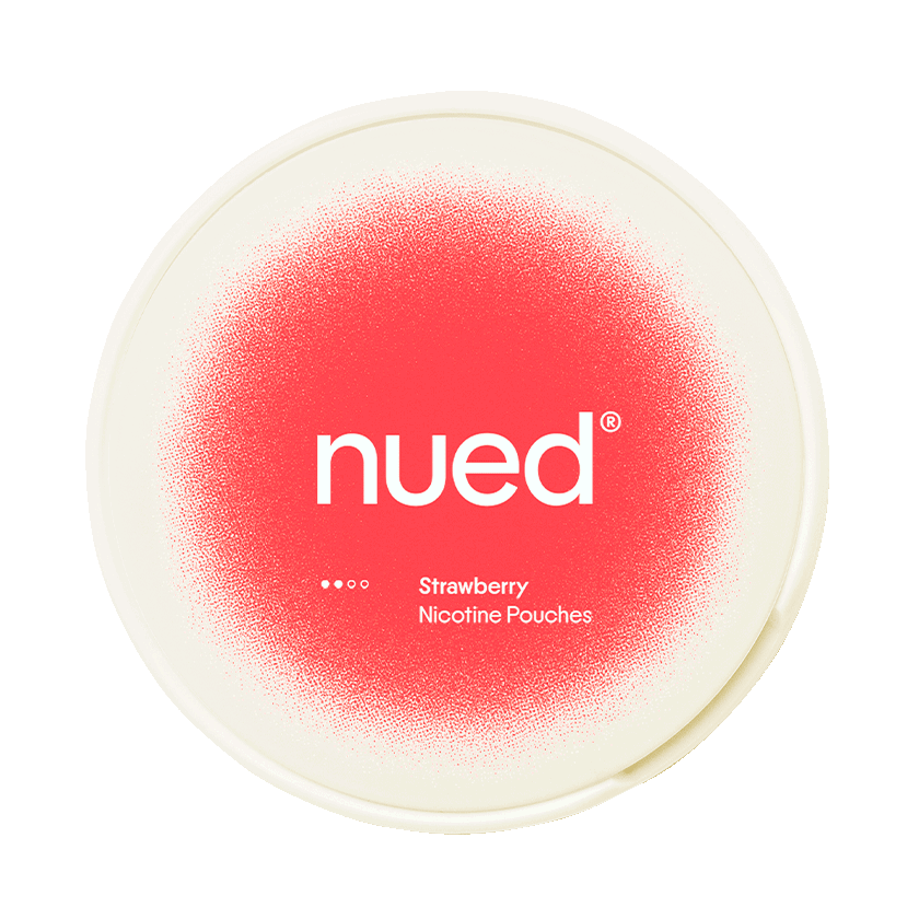 nued Strawberry är ett vitt snus med smak av jordgubb. Nikotinpåsarna har ett slimformat och styrkan är normal.