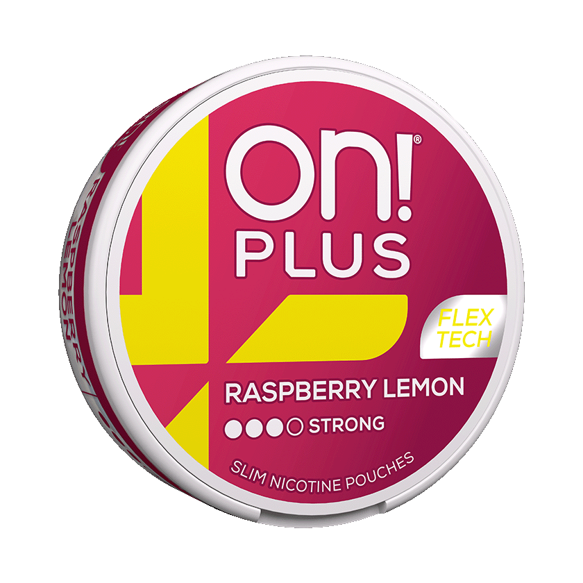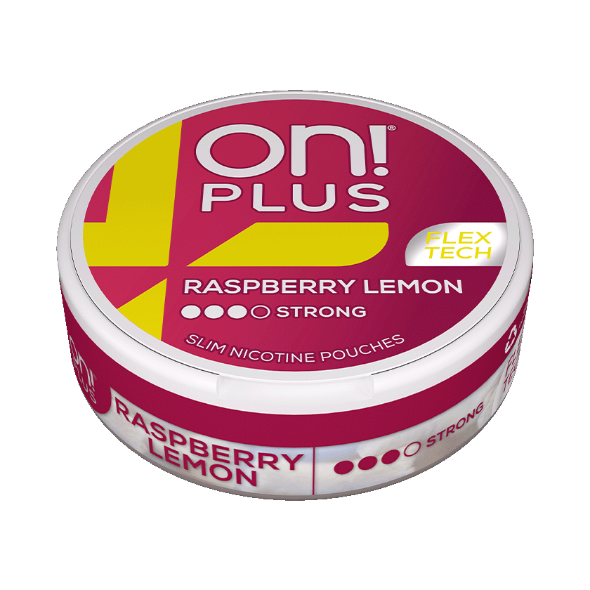 on! Plus Raspberry Lemon Strong är ett vitt snus med smak av hallon och citron. Produkten är tobaksfri men innehåller nikotin. Prillorna är i slim-format och styrkan är stark.