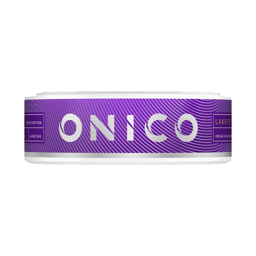 Onico Lakrits Nikotinfritt Snus är ett nikotinfritt snus. Produkten är skapad för att efterlikna White Portion och har en större nikotinfri prilla med en smak av lakrits, salmiak, fikon och en svag ton av tobak. Kan används av gravida samt vid amning.