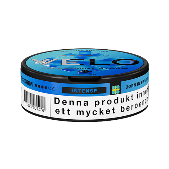 VELO Peppermint Storm är ett vitt snus med smak av pepparmint och menthol. Detta är ett extra stark snus i slim-format med 10,9 mg per portion och 15 mg/g.