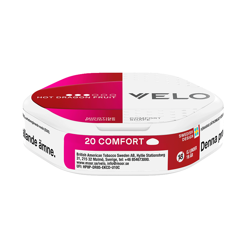 VELO Shift Hot Dragonfruit är ett vitt snus vilket innebär att det är tobaksfritt. Formatet är slim men med runda kanter på prillorna. Smaken är drakfrukt med inslag av krydda och styrkan är stark.