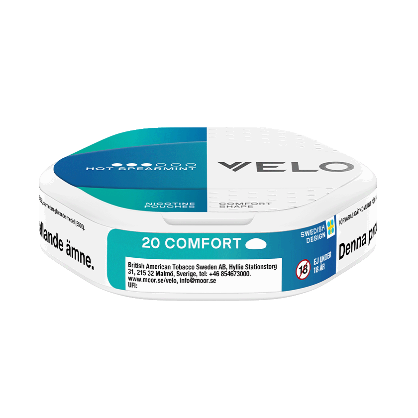 VELO Shift Hot Spearmint är ett vitt snus vilket innebär att det är tobaksfritt. Formatet är slim men med runda kanter på prillorna. Smaken är spearmint och styrkan är stark.