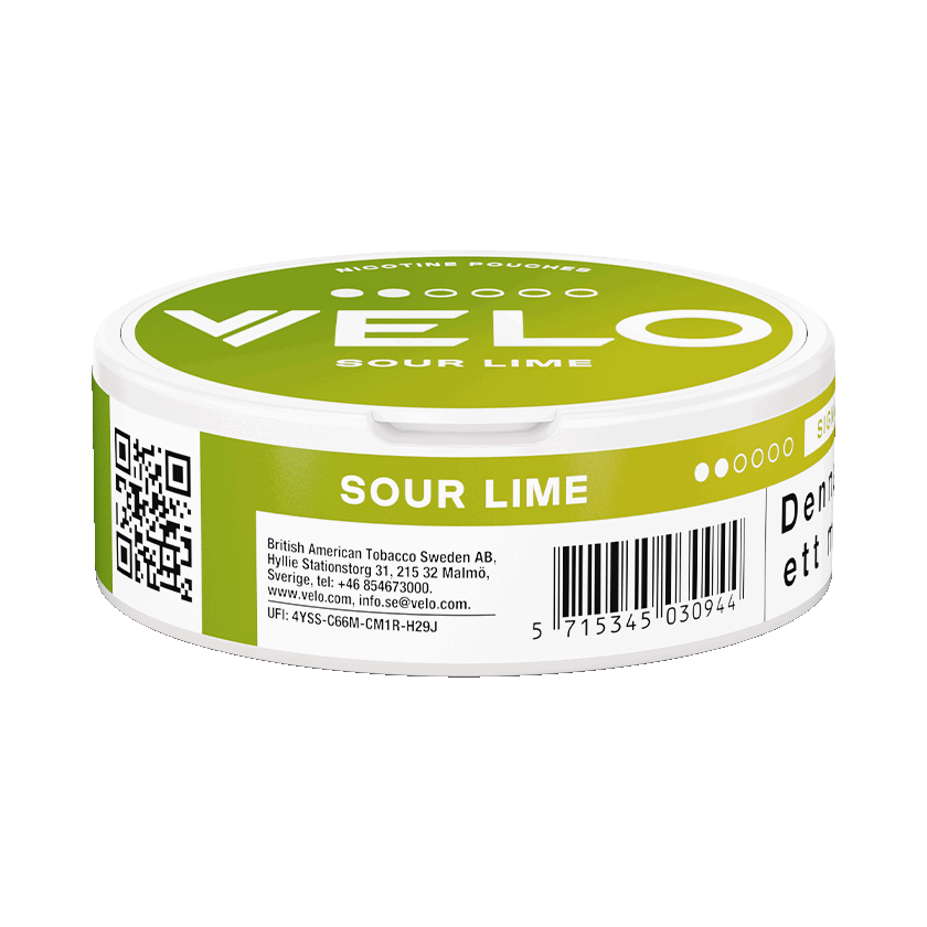 VELO Sour Lime 6 mg är ett vitt snus med smak av lime och citrus. Nikotinpåsarna är i ett slim-format och styrkan är normal. Det vita snuset tillverkas av BAT.