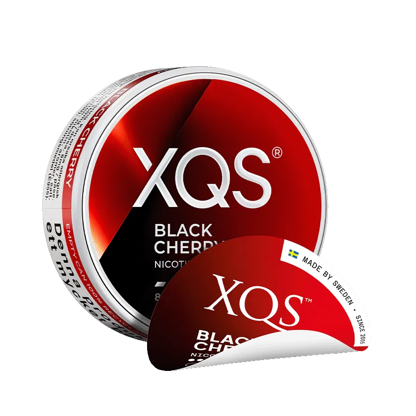 XQS Black Cherry Slim 4 MG innehåller smak av körsbär. Det är ett vitt snus utan tobak med prillor i slim-format. Dessa slimmade portioner har ett nikotininnehåll på 8 mg per gram som karaktäriseras som normal.