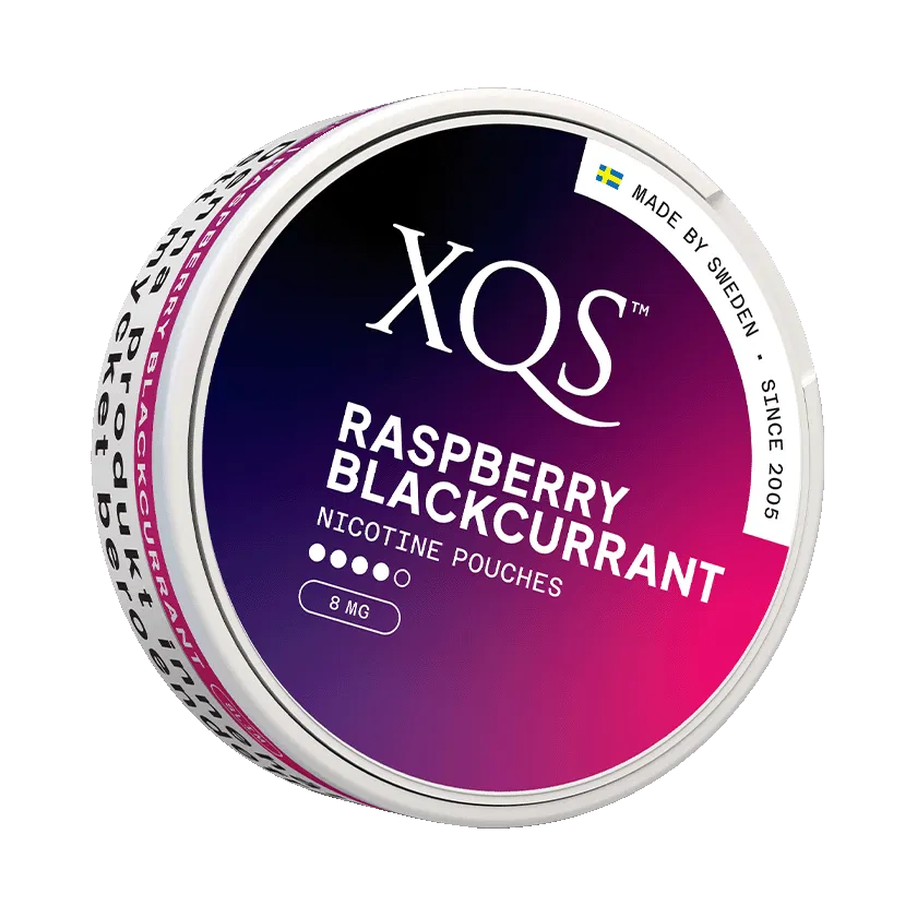 XQS Raspberry Blackcurrant Slim Strong har en smak av svarta vinbär och hallon. Det är ett vitt snus med stark styrka i slim-format.