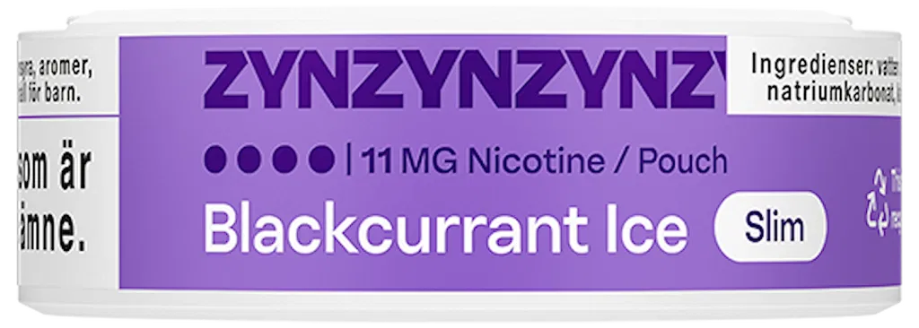 ZYN Blackcurrant Ice Slim S4 är ett tobaksfritt vitt snus med smak av gröna äpple och mint. Formatet på prillorna är slim och styrkan är extra stark. Tillverkas av Swedish Match.