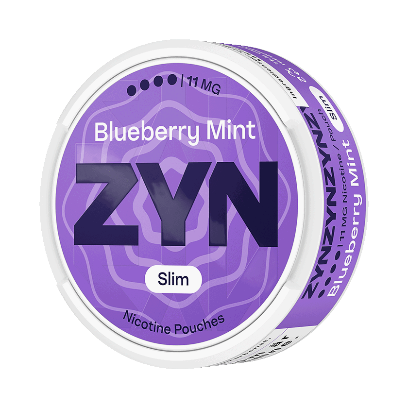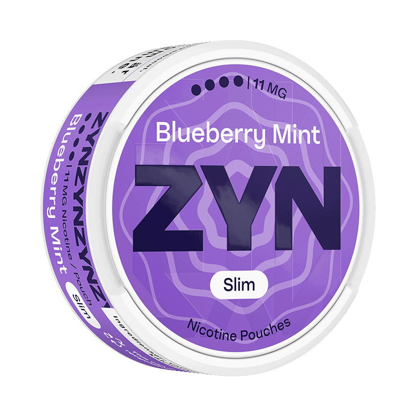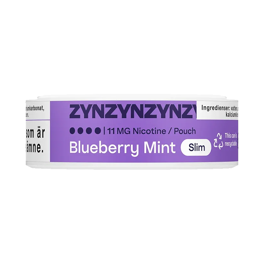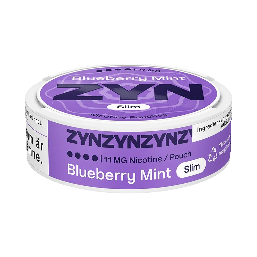 ZYN Blueberry Mint Slim Extra Strong är ett tobaksfritt vitt snus med smak av blåbär, mörka bär och mint. Formatet på prillorna är slim och styrkan är extra stark. Varje dosa innehåller 20 stycken prillor. Tillverkas av Swedish Match.