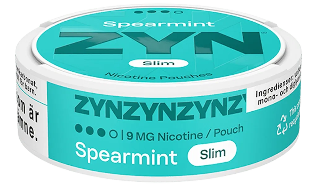 ZYN Spearmint Slim Strong är ett tobaksfritt vitt snus med smak av spearmint. Formatet på prillorna är slim och styrkan är stark. Tillverkas av Swedish Match.